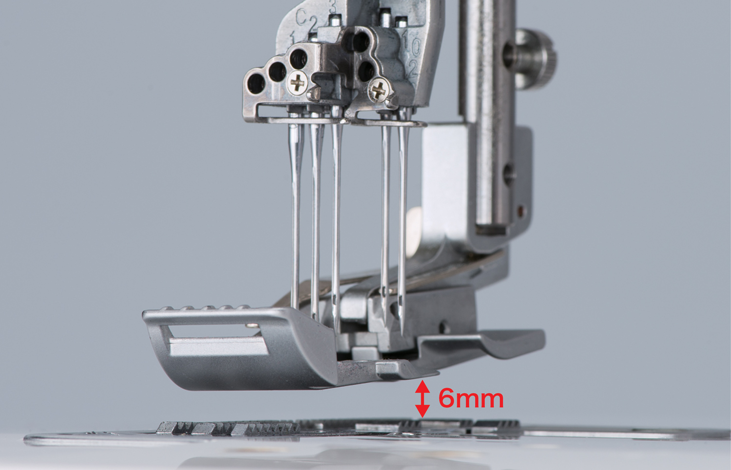 Výška zdvihu přítlačné patky se změnila na 6,0 mm. Díky této změně je práce se silnými látkami snazší.