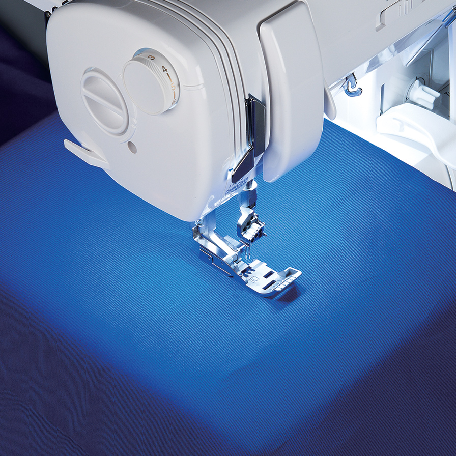 - Nastavitelná délka stehu 0,75-4 mm • Nastavitelný vestavěný rolovaný lem