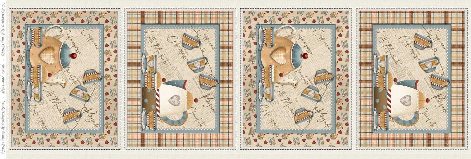 Tento panel Amor e Café - CAF 014 můžete objednat pouze s doplňkovou látkou (připište o kterou máte zájem) kterou můžete použít i jako šálový ubrus