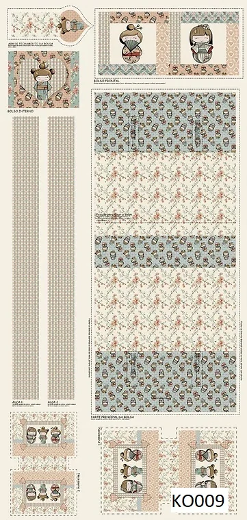 Na panelu najdete střih na větší tašku a 2 malé taštičky . Nabízíme i doplňkové látky bez kterých nemůžete být. Cena 1 bm je 380kč.