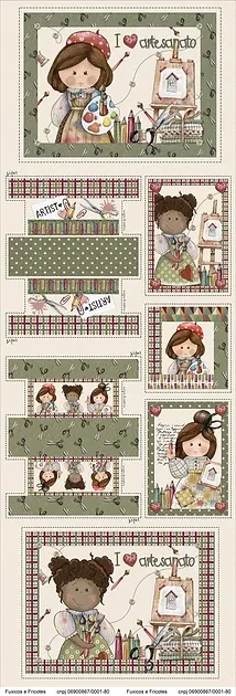 Na panelu najdete 2 taštičky, panely na polštáře, tašku nebo obaly na knihu. K panelu jsme vybrali doplňkovou látku pastelky.
