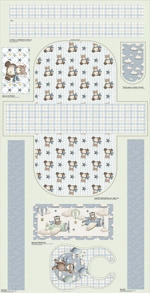 Exkluzivní látky z Brazílie Panel - Sada na ušití tašky pro malé děti a bryndáček 75 x 150 cm